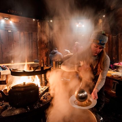 After arriving your hosts will serve you good drinks and a delicious homemade reindeer bidos. The tasty dinner is followed by bonfire coffee and cake and some interesting new facts and stories about the King of the Arctic – the polar bear.