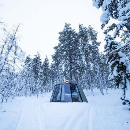 Enjoy a spectacular nature experience in the comfort of your own Aurora Hut glass igloo, go to sleep admiring the starry sky and wake up to the beautiful views of the surrounding nature in Muonio in Finnish Lapland.