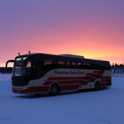 Travel comfortably onboard a modern bus from Levi (Sirkka) to Rovaniemi in Finnish Lapland.