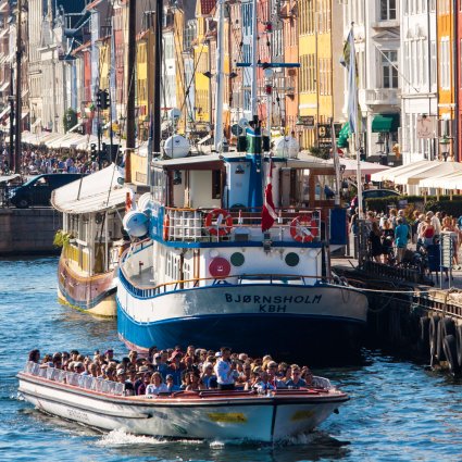 During the summer you can hop on and off the boat at one of the seven stops and see the area by foot. You will discover a whole new side of Copenhagen. The boat goes through the picturesque canals of Christianhavn and Frederiksholm where historical buildings are to be enjoyed side by side with more modern architecture. Outside the summer season the boat sails without stops and some tours are live guided.