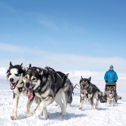 Visit the Harriniva Husky Farm with more than 400 huskies. After the safety instructions you will start the 15 kilometer long husky safari through the forests of Olosvuoma. You will drive through treeless swamps and snowcovered forests. Lunch will be included in the tour.
