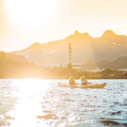Experience kayaking in the beautiful and magical evening summer light. Appreciate Lofoten’s dramatic mountains from a new perspective when you paddle up close to them. You cannot get closer to nature than this.