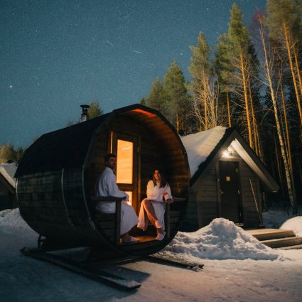 This little sauna on wheels will brighten up your day at Apukka Resort. Enjoy a traditional sauna session in Finnish Lapland, the sauna will be waiting for you right on your door step.