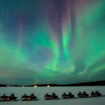 Join this guided snowmobile excursion in search of the magical Northern Lights. Drive across frozen lakes, through the Lappish winter wonderland and enjoy dinner in a wilderness cabin.