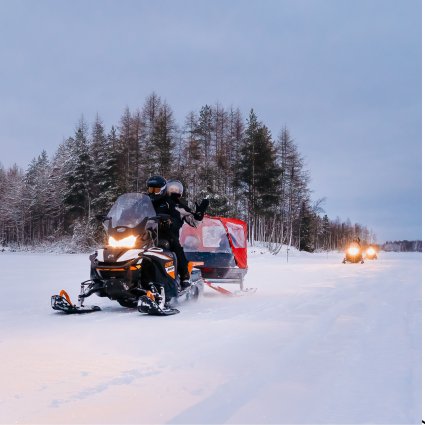 Experience the thrill of a snowmobile safari in Rovaniemi! Navigate the snowy trails through the Lappish wilderness. This exhilarating adventure combines speed, stunning scenery and the pristine beauty of Arctic nature – an unforgettable way to explore Finland's winter wonderland.