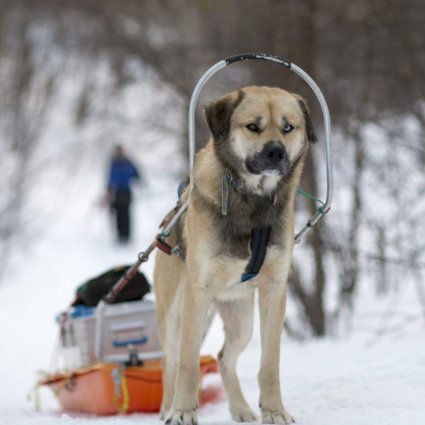 Combine a snowshoe hike through the Arctic forest in Alta with an ice fishing activity and outdoor lunch – all while accompanied by an eager canine companion!