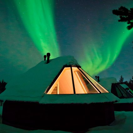 If booking our Tour Category SILVER you have the option to upgrade your Wilderness Room to stay in an Aurora Cabin at Wilderness Hotel Muotka for two nights.