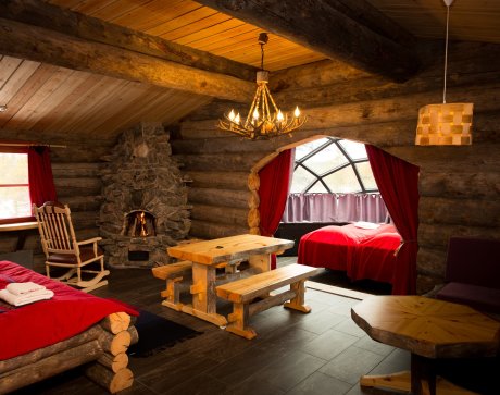 The newly-built Kelo-Glass Igloos in the West Village are made from Lapland’s unique Kelo pinewood and combine the comfort of a warm cosy log chalet with the extraordinary views of a Glass Igloo.