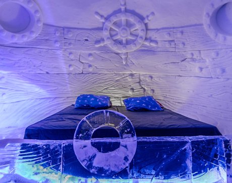Every guest at the Snow Hotel will sleep like Snow Queens and Kings in the Snow Suites! The rooms are spacious and beautifully decorated and illuminated by art made of snow. There are curtains in front of every Snow Suite. Temperature varies from -4 Celsius degrees to -6 Celsius degrees.