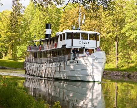 M/S Diana is the youngest of the company’s ships, built at the Finnboda shipyard outside Stockholm and launched in 1931. She had been ordered in anticipation of a wave of Swedish-American guests during the Tercentenary Celebration and was designed to travel the Göta Canal between Gothenburg and Stockholm. M/S Diana was listed in 2009, meaning that the National Maritime Museums consider her historically important.