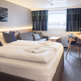 - Hurtigruten: Accommodation in an unspecified Polar Outside cabin (porthole or window) with shower/WC.