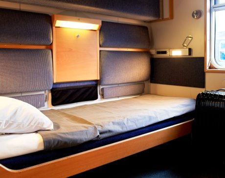 Travel onboard the overnight train in a private compartment and wake up the next morning in Norway.