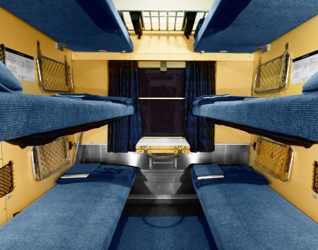 Bed (Couchette) means a place in a shared 6-berth compartment. You make up your own bed with the pillowcase, sheet, sleeping bag and blanket provided. The back cushion on the seat serves as the pillow. The beds fold down so that passengers can sit comfortably during the day. Shared toilet and shower facilities are found along the corridor.