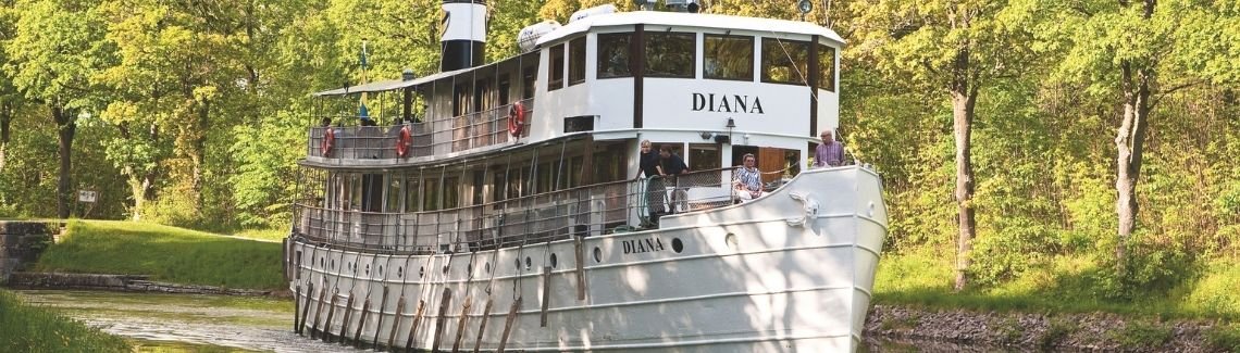 M/S Diana: The M/S Diana is the youngest of the company’s ships, built at the Finnboda shipyard outside Stockholm and launched in 1931. She had been ordered in anticipation of a wave of Swedish-American guests during the Tercentenary Celebration and was designed to travel the Göta Canal between Gothenburg and Stockholm. There are 25 cabins on three decks. The M/S Diana has bunk beds in the cabins except for the cabins on main deck, which are fitted with twin beds.